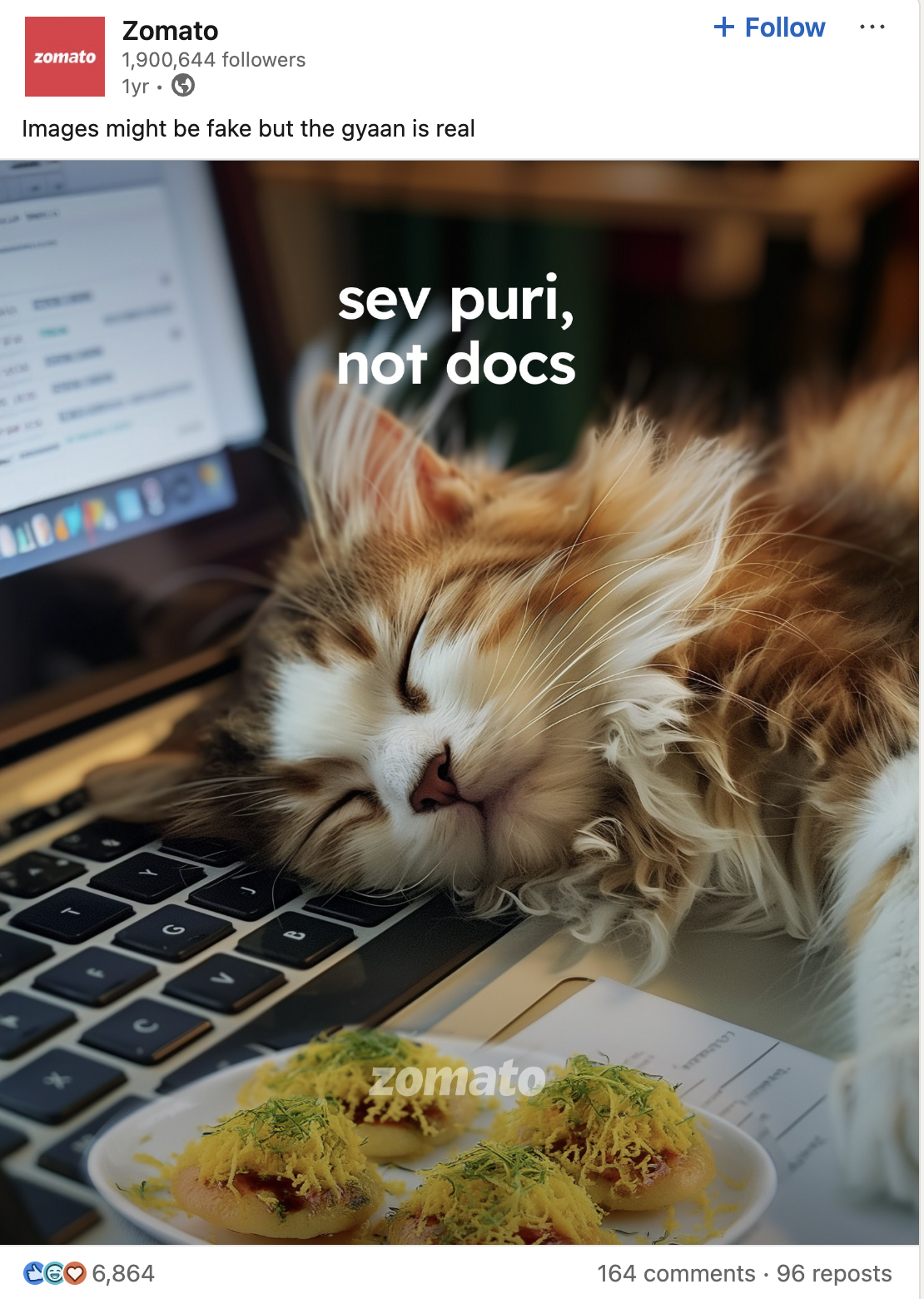 - The post was centered around food (what Zomato as a business stands for).