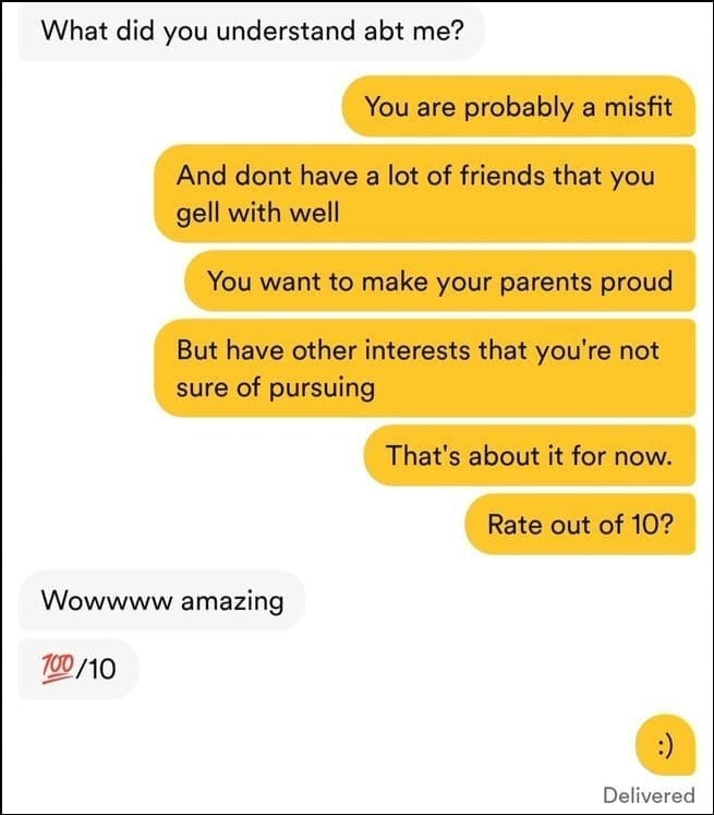 - I understood people deeply (tells me who i'm speaking to)