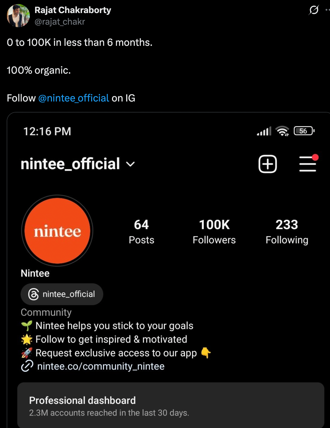 Later, I repeated the same for Nintee, on a brand new channel - Instagram