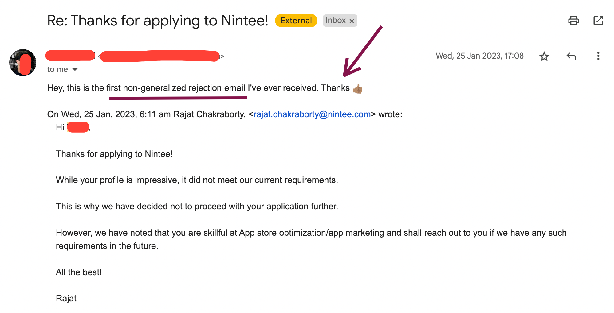 6.) Candidates thanked me for rejecting them with empathy